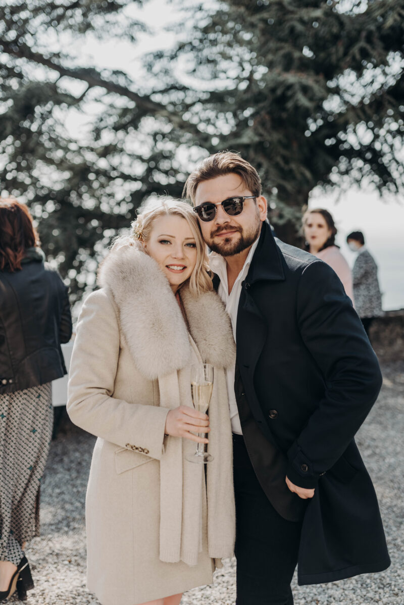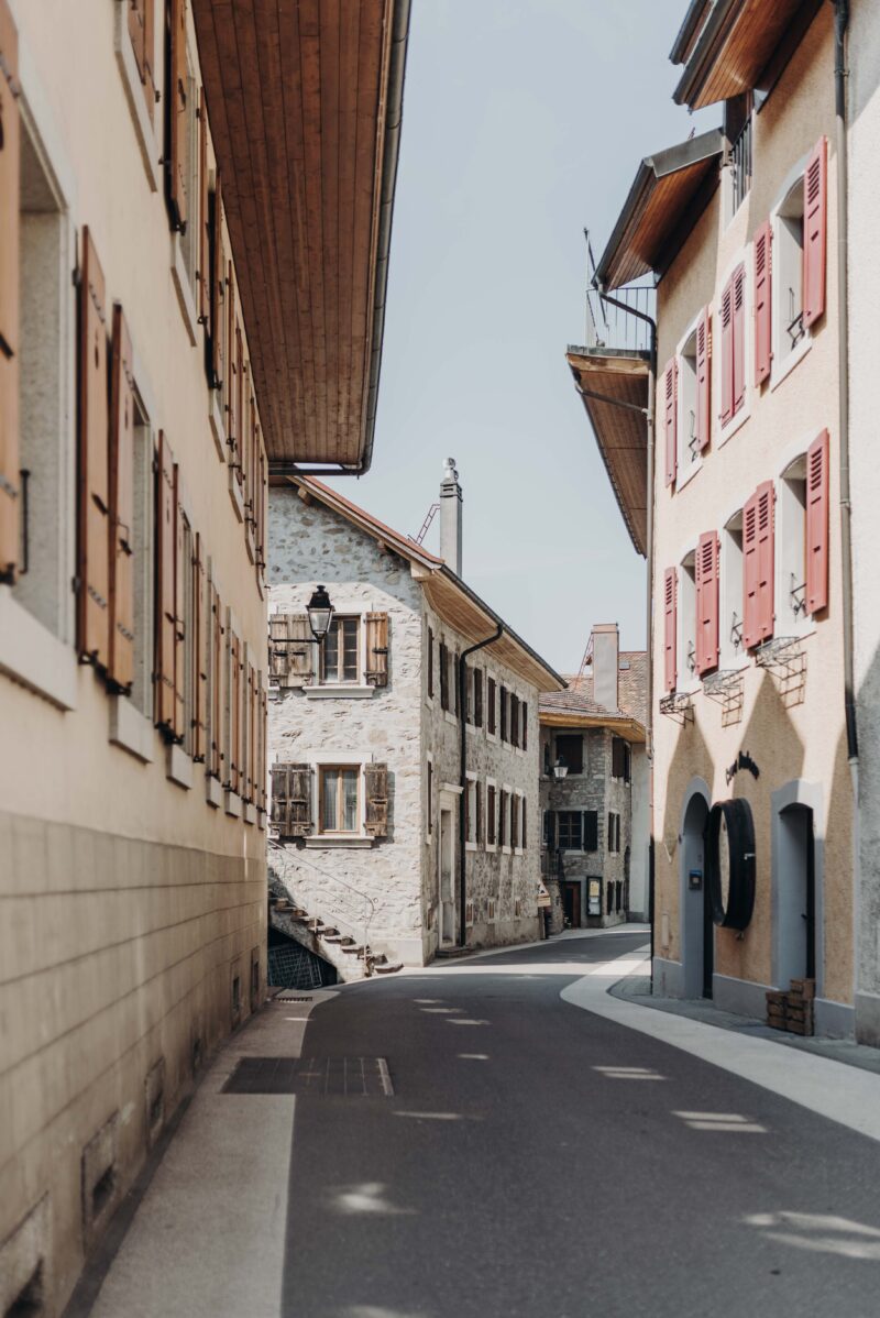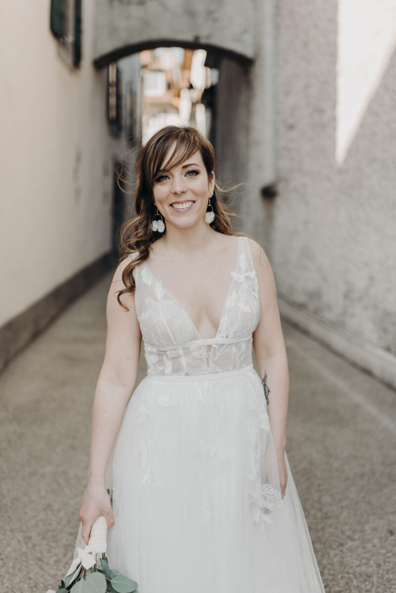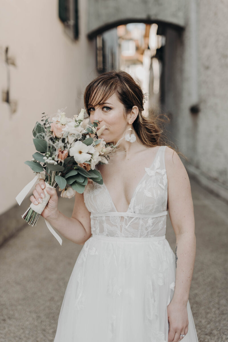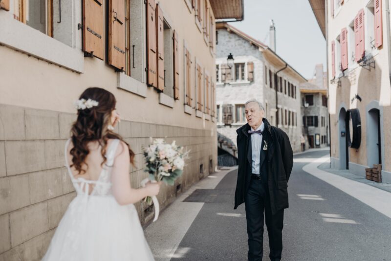Juste avant de se déplacer pour la soirée, on prend une vingtaine de minutes pour les photos de couple, dans les jolies ruelles de Grandvaux.
