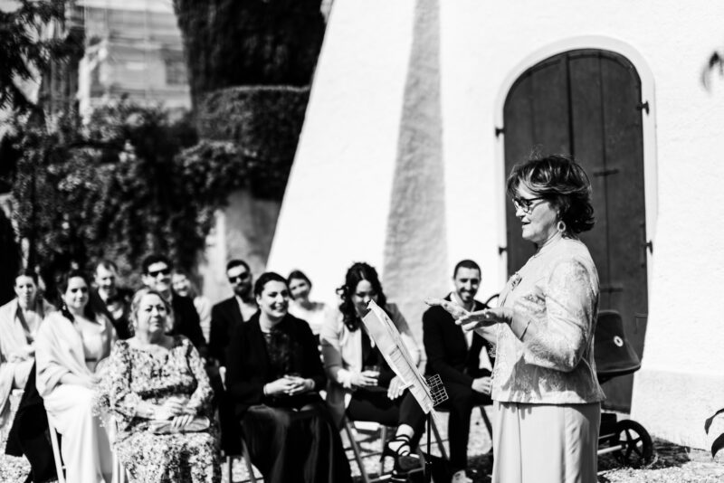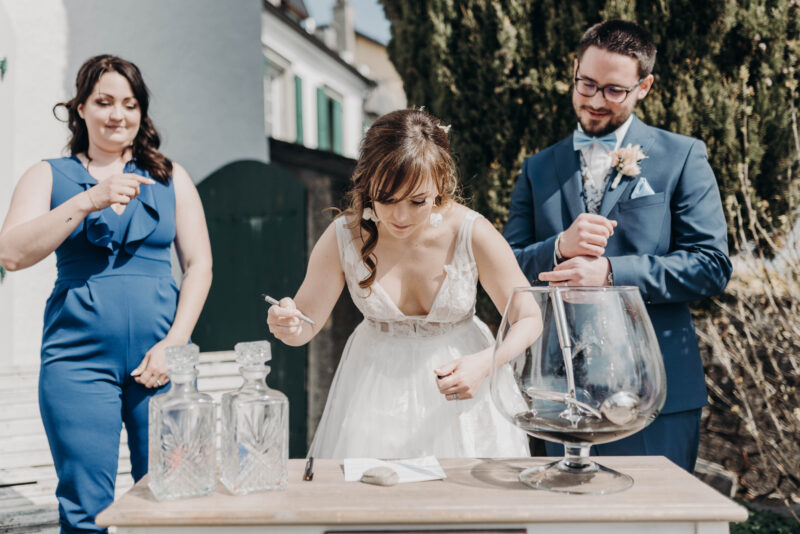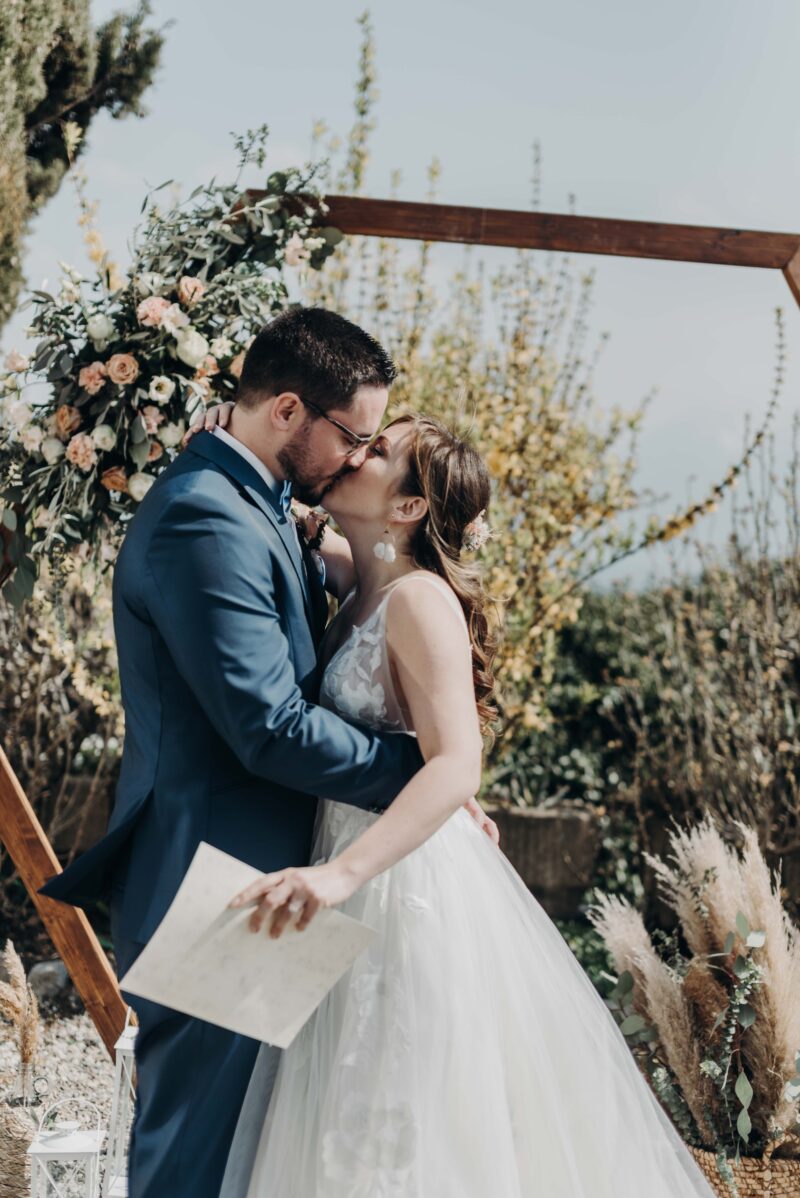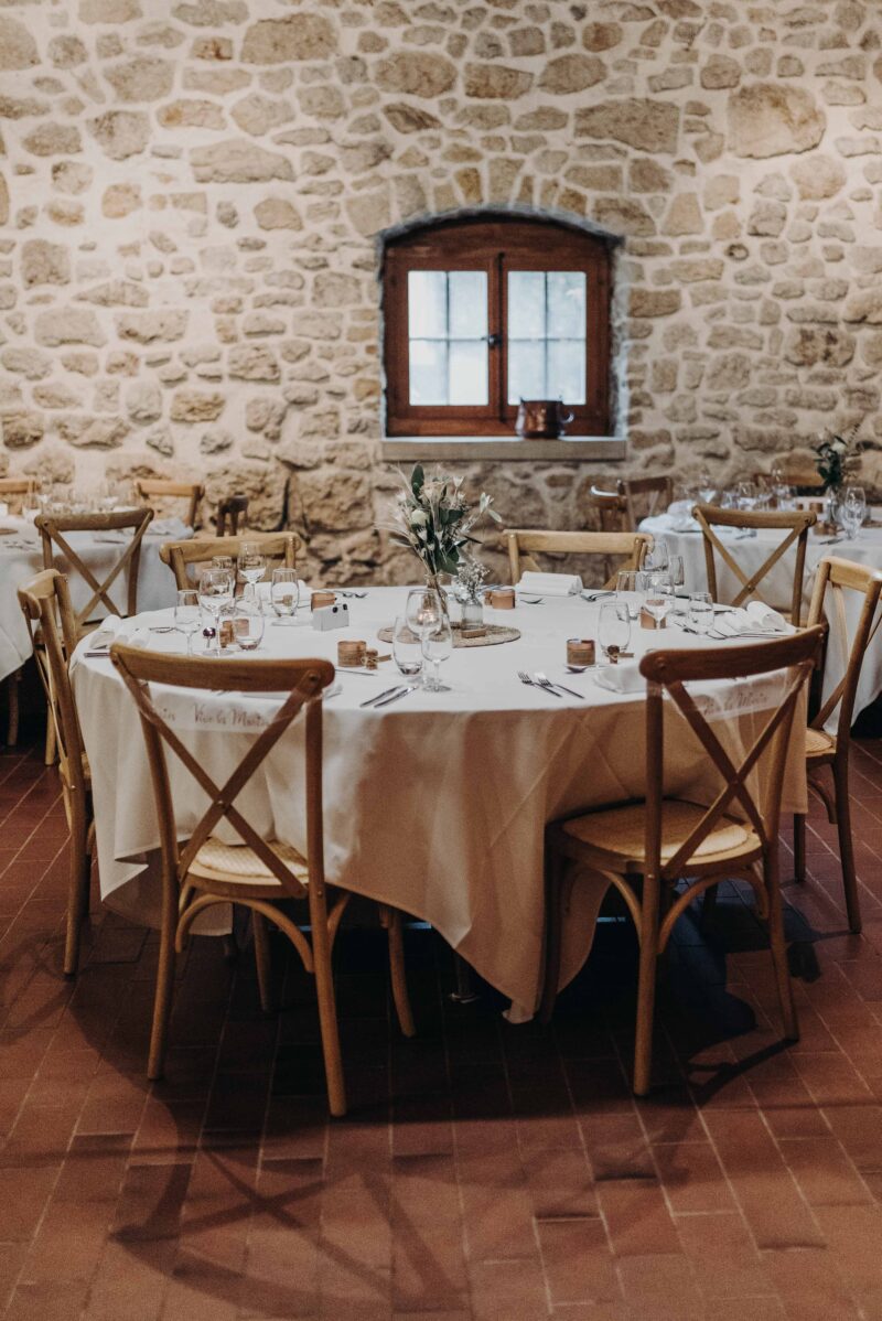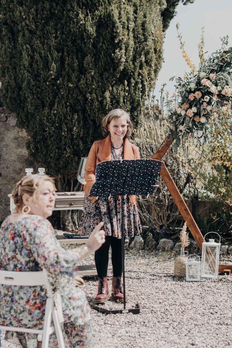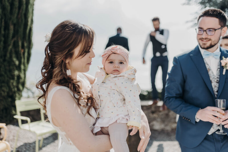 La suite des évènements se déroule à Grandvaux, à la Maison Buttin-de-Loës, où Marion de Creativy a décoré et mis en place le lieu de la cérémonie avec goût. C’est sa maman, Laure, qui officiera la cérémonie laïque.