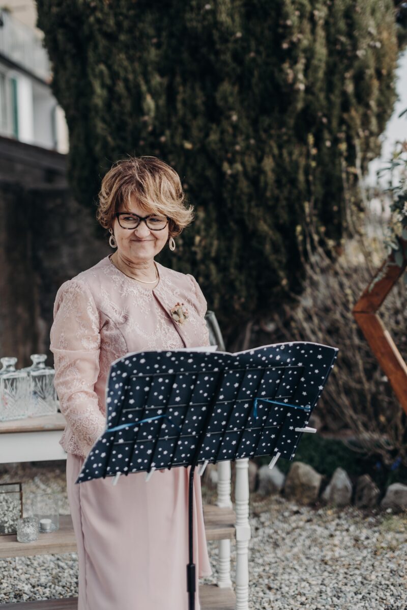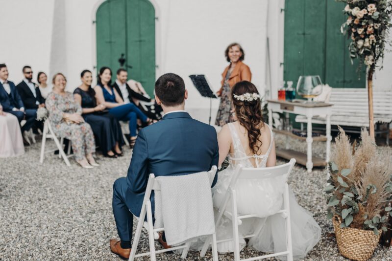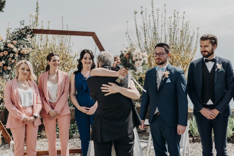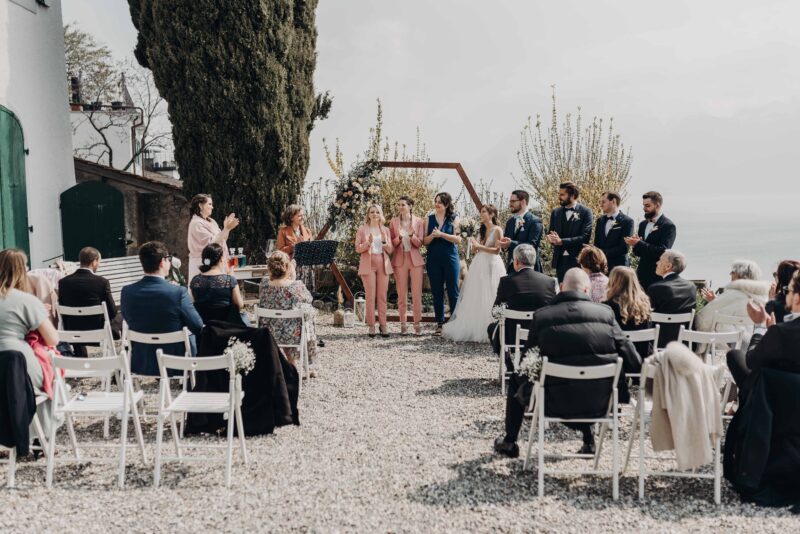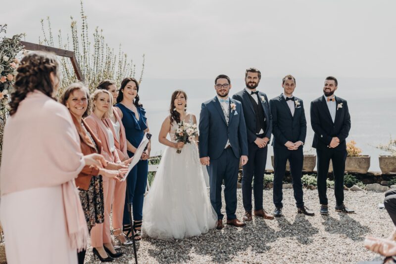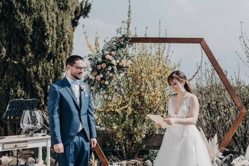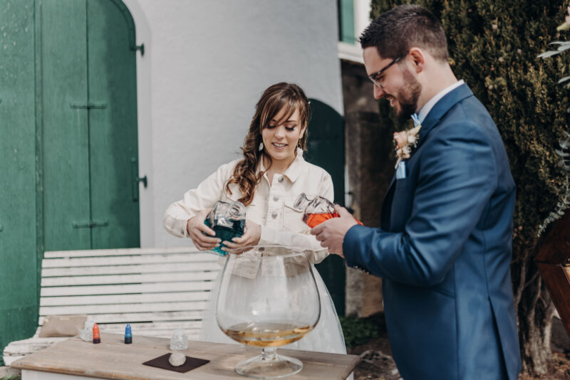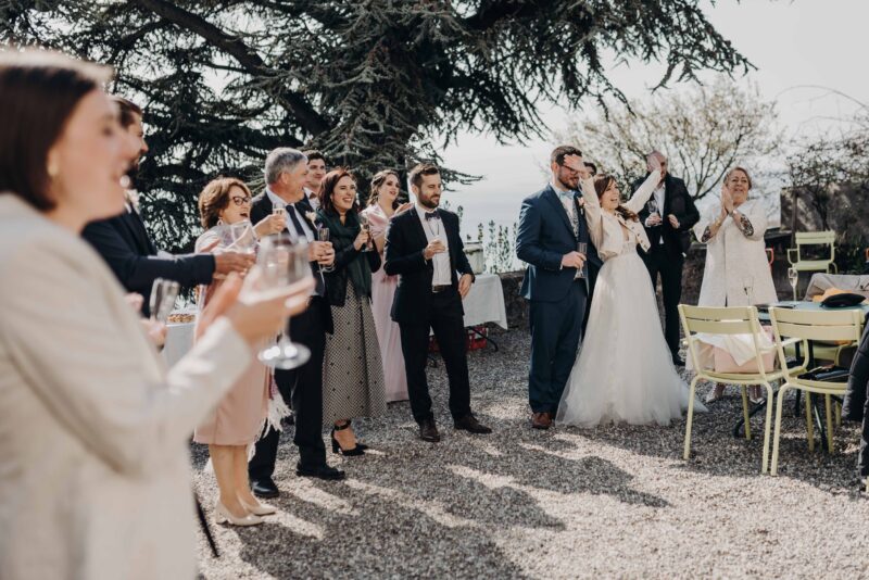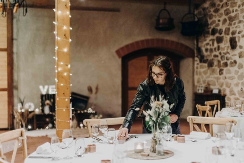 La suite des évènements se déroule à Grandvaux, à la Maison Buttin-de-Loës, où Marion de Creativy a décoré et mis en place le lieu de la cérémonie avec goût. C’est sa maman, Laure, qui officiera la cérémonie laïque.