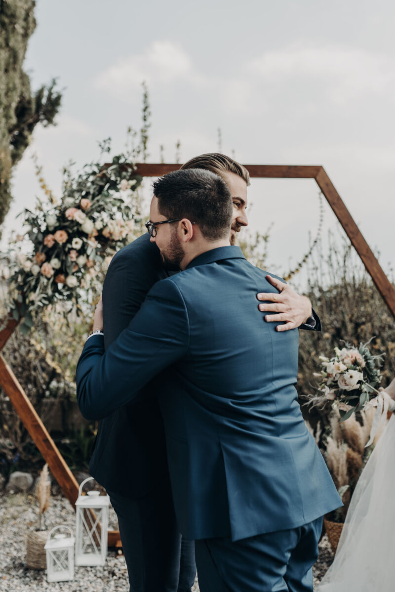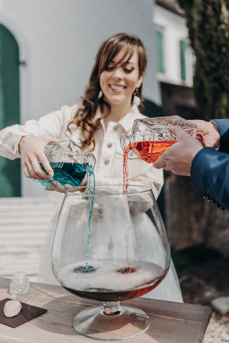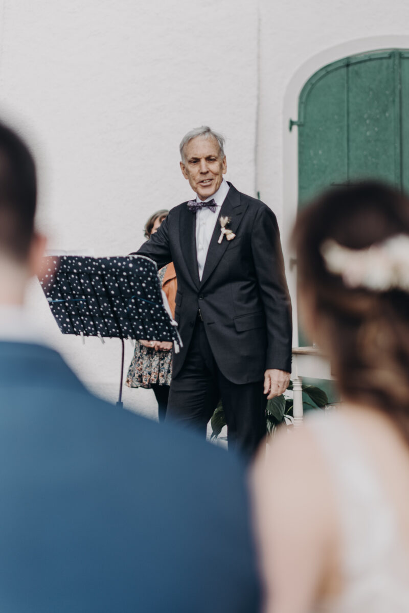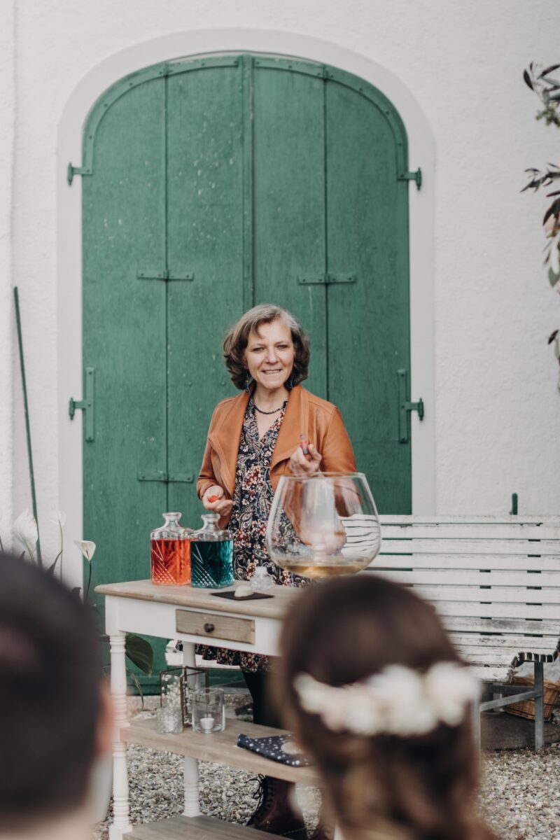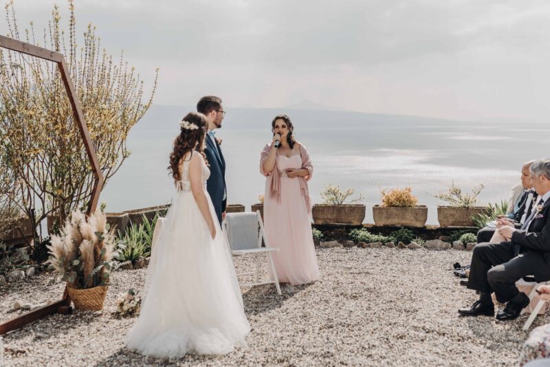 La suite des évènements se déroule à Grandvaux, à la Maison Buttin-de-Loës, où Marion de Creativy a décoré et mis en place le lieu de la cérémonie avec goût. C’est sa maman, Laure, qui officiera la cérémonie laïque.