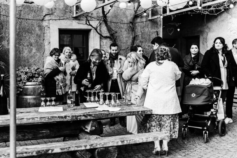 La soirée se déroule dans un magnifique domaine à Arnex-sur-Orbe, dans une salle délicatement décorée par Marion. J’en profite pour immortaliser la décoration et quelques instants volés avant de les laisser profiter du repas et de la soirée!