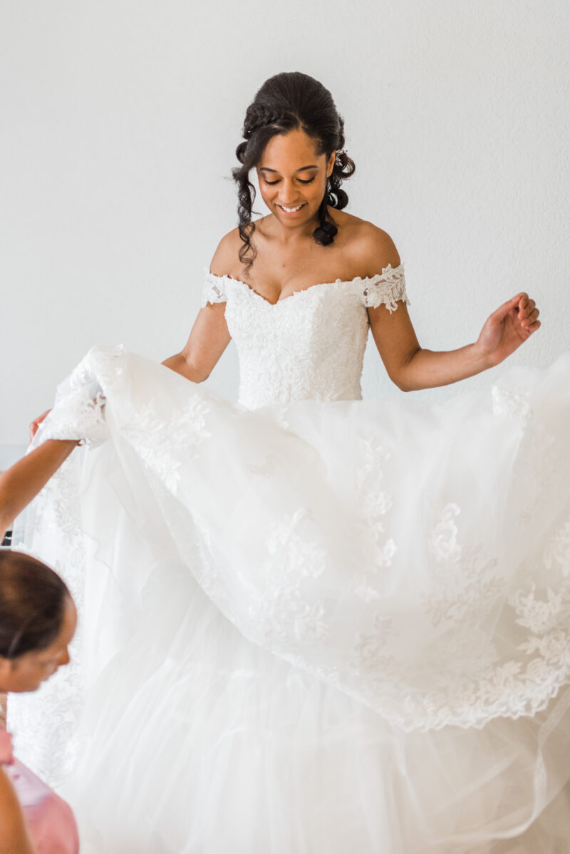 Lors des premiers mois, nos préparatifs avançaient merveilleusement bien. Nous avons rapidement trouvé le lieu, le thème, le traiteur, réservé à l’état civil et à l’église, établi la liste d’invités, choisi le vin, commandé nos tenues de mariés… et puis mars 2020 est arrivé. Tout s’est arrêté. Malgré le début de pandémie, pas une seule seconde à ce stade nous avions pensé qu’il était possible que notre mariage puisse être annulé. Et puis, nous avions avancé nos préparatifs tellement rapidement que cette pause “semi-confinement” ne nous a pas vraiment stressé. Au contraire, elle nous a fait du bien. D’ailleurs je pense qu’une grande partie de la population se disait comme nous, “juste un petit effort, on arrête de vivre deux mois, et puis on sera sortis d’affaire, bye bye le corona”. Encore une erreur ! Une fois le déconfinement débuté, nous commencions à réaliser que non, la crise n’était pas finie, et que malheureusement, une deuxième vague pouvait arriver et potentiellement nous empêcher de célébrer notre union. D’autant plus que notre mariage dépendait non seulement de la possibilité de se rassembler à 100 personnes, mais aussi de l’ouverture des frontières. Étant martiniquaise, la moitié de nos invités venaient de Paris et des Antilles.