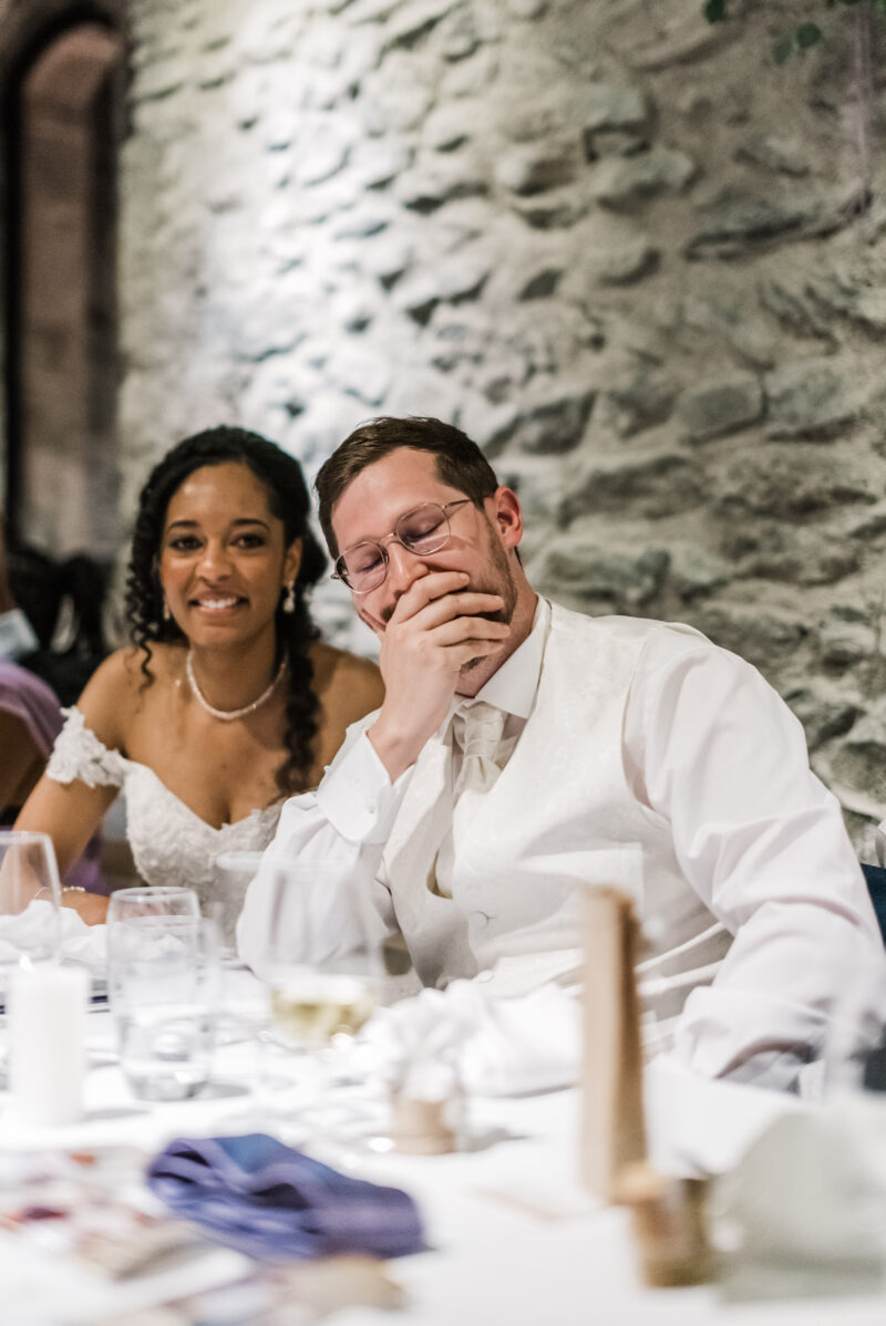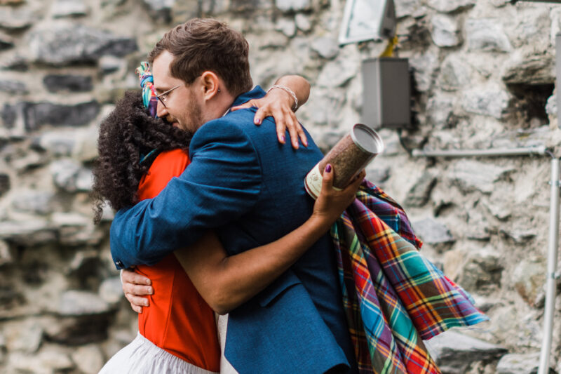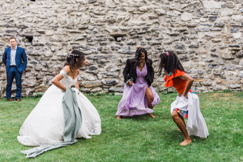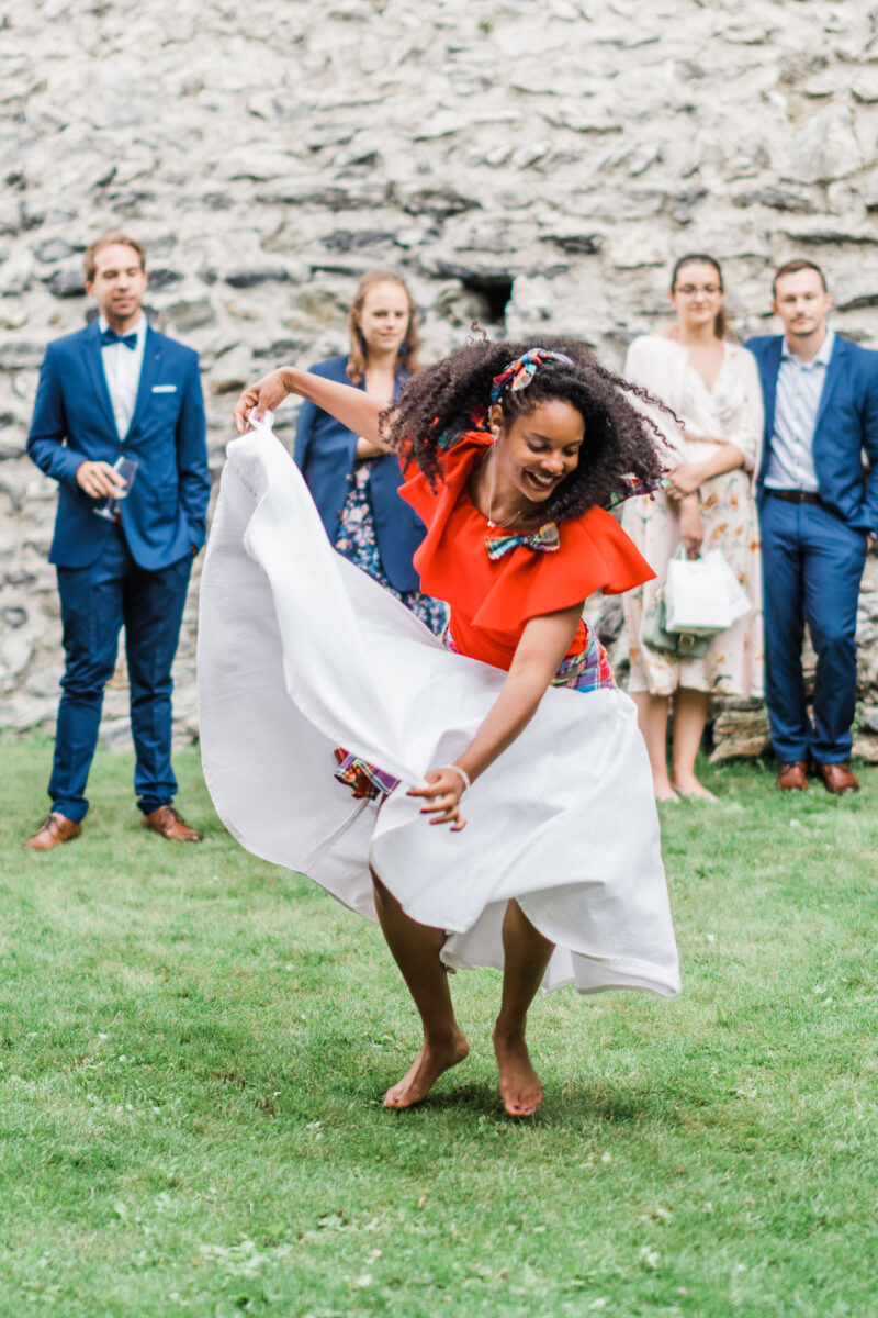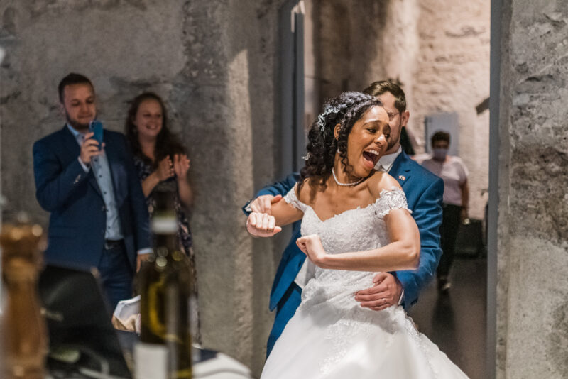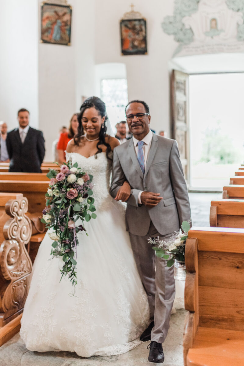 Finalement, malgré toutes ces péripéties et tout ce stress, aujourd’hui nous pouvons dire que nous avons été les plus chanceux du monde. Malgré la pluie et le Covid, notre mariage a été exceptionnel, et encore mieux que ce que nous avions imaginé J. Ma famille a pu venir (et aussi repartir) sans aucun problème, il a plu littéralement tout le week-end, et pourtant notre journée a été magnifique. Nos invités ont tous mis du soleil dans nos cœurs. Nous n’avons pas eu de chorale, mais entendre nos familles chanter pour notre amour, nous a donné des frissons. La pluie a fait une pause juste au moment de la sortie de l’église. Nos fleuristes ont su sublimer notre lieu de mariage, nos traiteurs ont ravi les papilles de tout le monde et notre dj a assuré. La pluie a fait une deuxième pause pour les animations martiniquaise et valaisanne que nous avions prévues en extérieur. Et pour couronner le tout, Clem a réussi à transformer un temps tout gris en paysage idyllique et romantique, pour des photos de mariés magnifiques ! Nous avons savouré chaque instant, beaucoup plus intensément que si les choses avaient été simples.