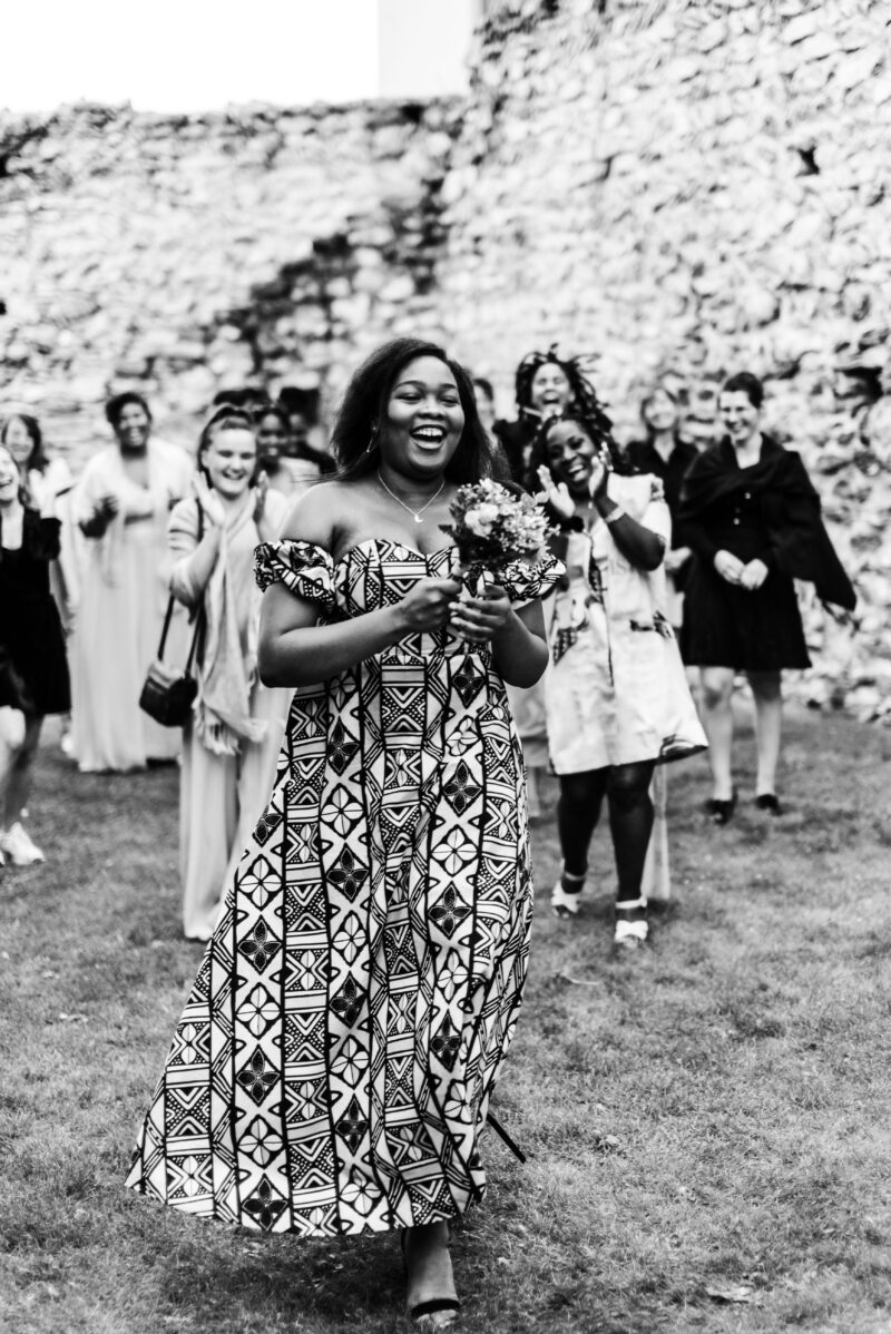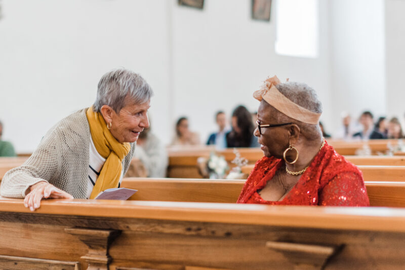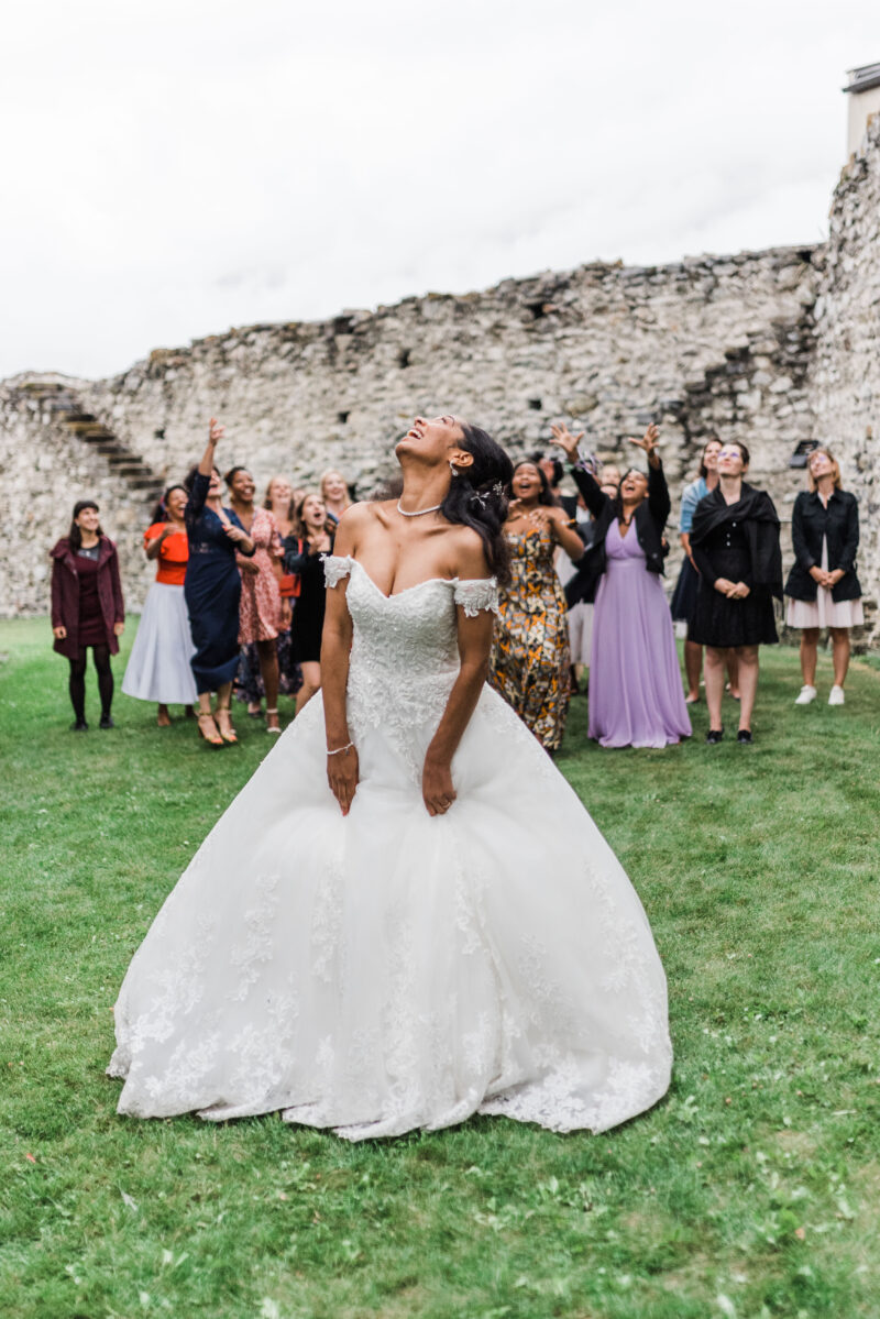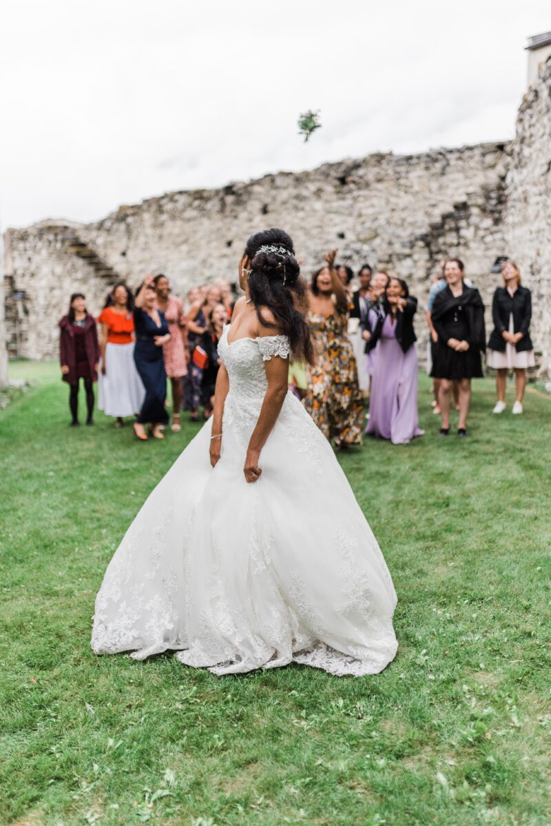 En juin, la libre circulation en Europe a été rétablie et la situation semblait nettement s’améliorer. Nous avons donc décidé de garder espoir et de nous replonger dans les préparatifs. Nos témoins ont même réussi, malgré les circonstances, à nous organiser des enterrements de vie de garçon et de jeune fille ! C’est pour vous dire l’équipe de choc qu’on avait pour nous soutenir. Au mois d’août la situation commençait à tourner. Ce fut le mois le plus stressant de toute notre vie. Nous avons eu presque une mauvaise nouvelle par semaine, la Belgique qui interdit les voyages en Suisse (alors que ma témoin vit à Bruxelles), le prêtre qui nous demande 3 semaines avant de lui faire un plan de chapelle et de respecter 1,50 m de distance entre chaque invité (et l’angoisse de devoir demander à certaines personnes de ne pas venir à la cérémonie puisque nous réduisions drastiquement la capacité de la chapelle), l’impossibilité de trouver une chorale pour animer notre messe, et pour finir, l’annulation de certains invités à la santé fragile, qui préféraient ne pas prendre le risque de venir à notre mariage. A ce moment-là nous nous sommes sincèrement demandé s’il n’était pas plus raisonnable de reporter notre mariage, pour éviter de mettre nos invités en danger. Et puis nous avons pesé le pour et le contre. Si ce n’était pas maintenant, alors quand ? Nous n’avions aucune visibilité sur l’avenir, et sur la possibilité d’envisager un jour de revivre comme avant. Avec nos témoins, nous avons bien réfléchi. Pour réduire le risque de transmission du virus nous allions faire tout notre possible : les distances seraient respectées à la chapelle, l’apéro serait à l’extérieur étant donné le beau temps qu’il avait fait tout le mois d’août (il était évident pour nous que nous aurions au moins cette chance), des masques seraient distribués, et pour finir, nous avons fait un plan de table pour réunir les invités par groupe de fréquentation. Sauf qu’évidemment, le destin avait décidé de nous torturer une dernière fois. J-8 : L’heure de vérifier la météo qu’il ferait pour le grand jour, pour être sûre que nos plans se dérouleraient comme prévu. Et là, c’est la catastrophe. Le seul week-end de pluie de l’été est tombé pour notre mariage ! Et comme si ça ne suffisait pas, alors que ma famille de Martinique venait d’arriver à Paris, les médias annonçaient une fermeture imminente des frontières avec la France. Ce fut le pire moment de notre année. Nous étions au fond du trou. Le soutien sans faille et la présence de nos proches a été l’unique chose qui nous a permis de continuer à y croire. Nous ne les remercierons jamais assez.