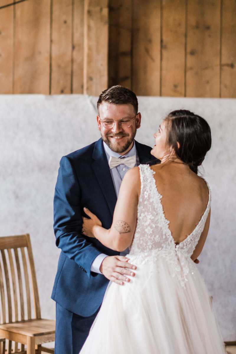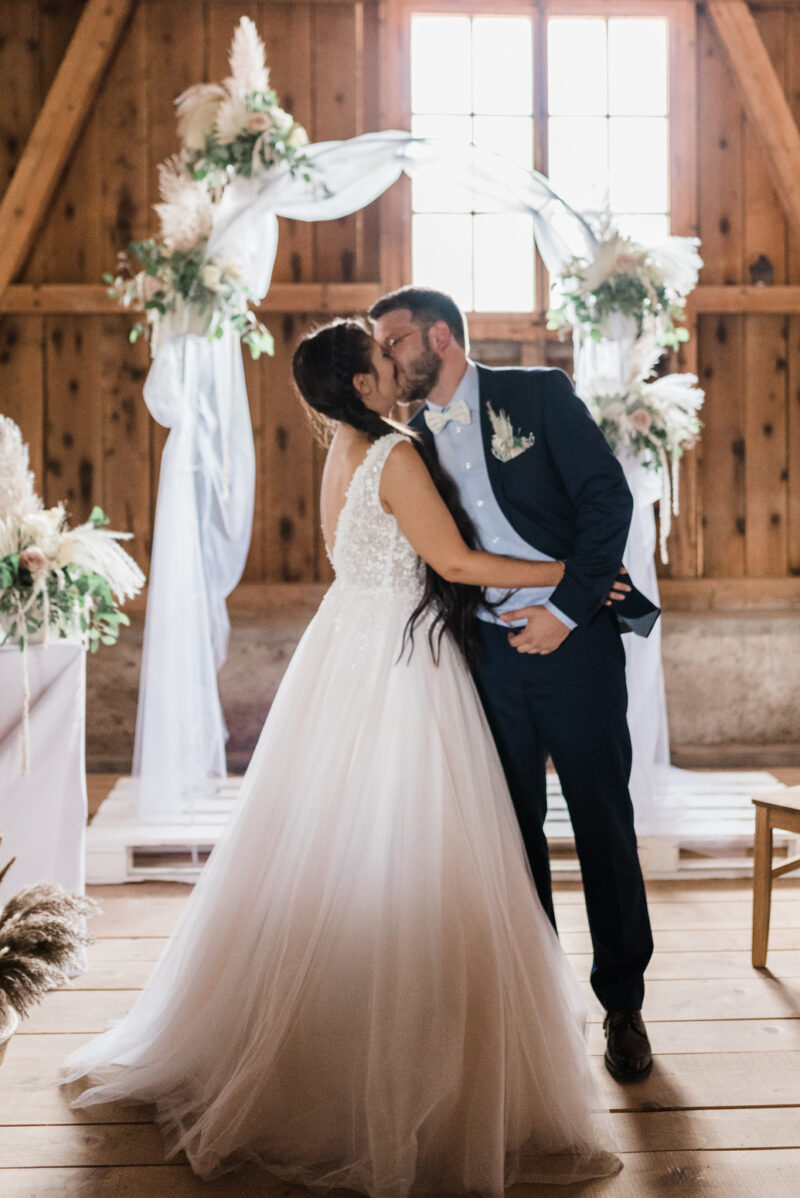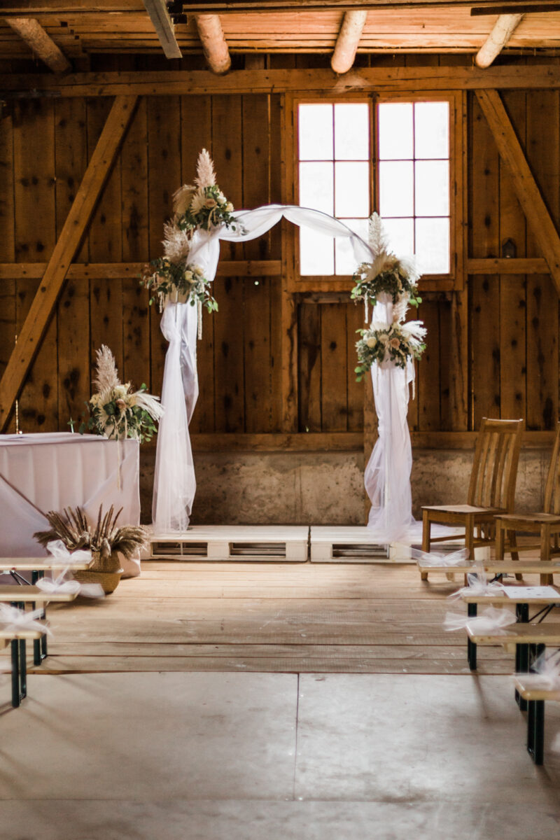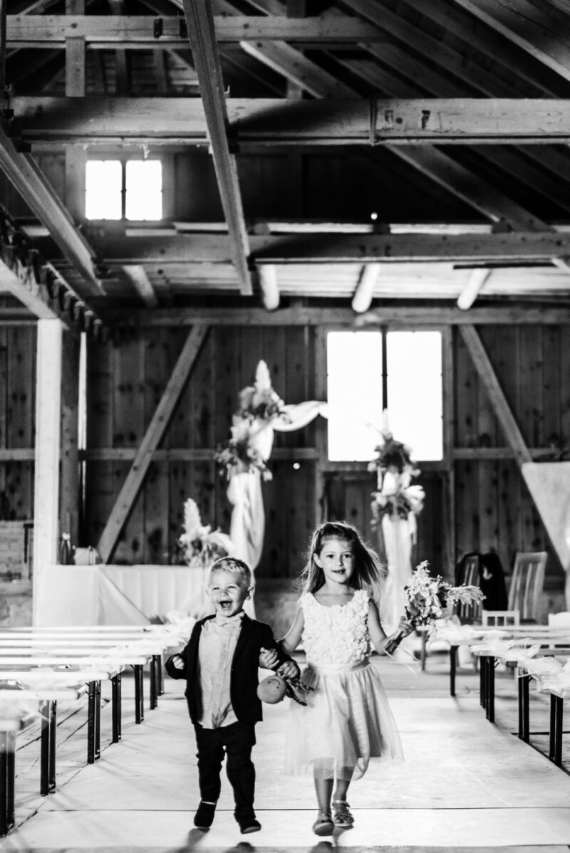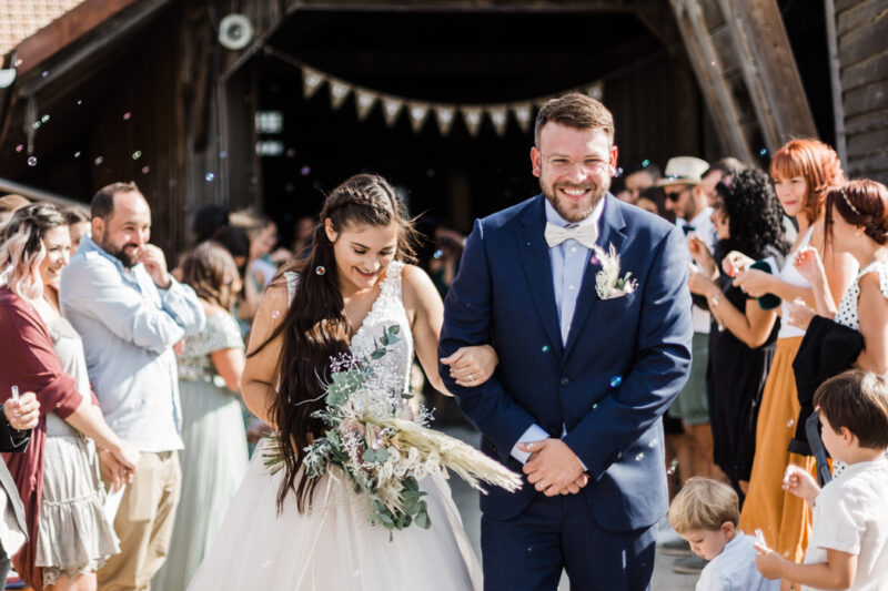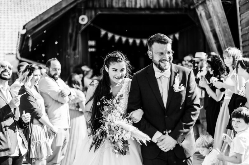Naomi et Marco ont décidé de célébrer leur amour avec leur proche dans une grange magnifiquement décorée, avec leurs témoins comme maîtres de cérémonie.