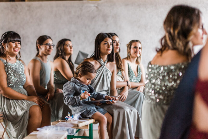 En attendant l’arrivée de la mariée sur le lieu de la cérémonie laïque, j’en profite pour immortaliser la décoration, l’ambiance choisie par les mariés et les enfants qui s’occupent, entre émerveillements, jeux et intrigues.